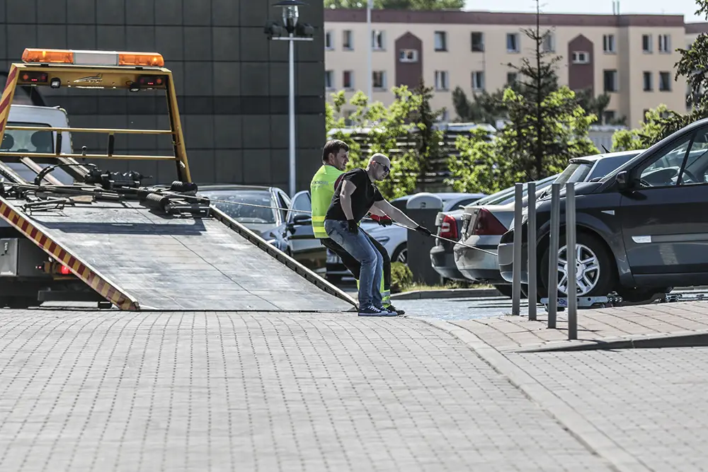 Policjanci potwierdzili, że renault nie powinno stać w miejscu dla inwalidy. Pod CRS została wezwana laweta pomocy drogowej Maxmar. Podjęto decyzję o odholowaniu samochodu na policyjny parking. Samochód na rolkach został wciągnięty na lawetę i zabrany z parkingu. Miejsce odblokowano.