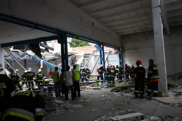 – Na miejscu pracuje ponad 30 strażaków zawodowych i ochotników – mówi st. kpt. Ryszard Gura, rzecznik zielonogórskich strażaków. Po zabezpieczeniu stropów fabryki strażacy zajęli się przeszukiwaniem gruzu. Świadkowie powiedzieli, że widzieli cztery osoby, które weszły na teren opuszczonej fabryki. To złomiarze, którzy wycinali stalowe elementy konstrukcji. Jak na razie, na szczęście, nie natrafiono na ciała.