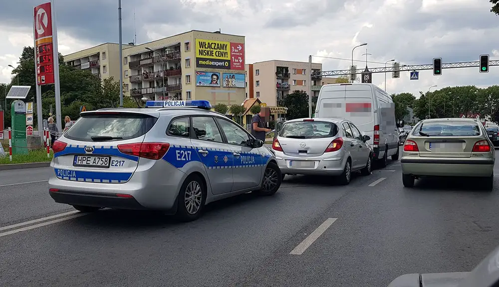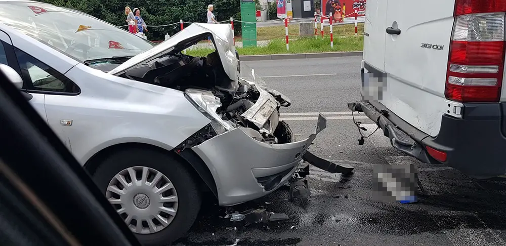 Rozbite samochody blokują jeden pas ruchu w kierunku ronda Jana Pawła II. Mercedes sprinter odjedzie z miejsca zdarzenia, a opel zostanie zabrany lawetą pomocy drogowej.