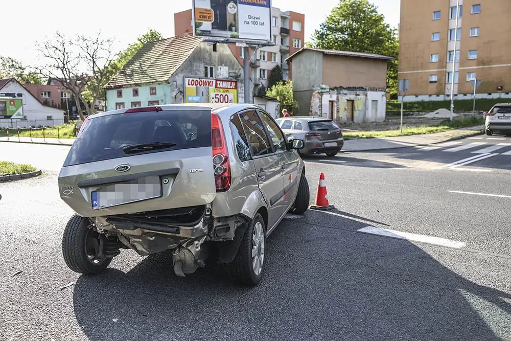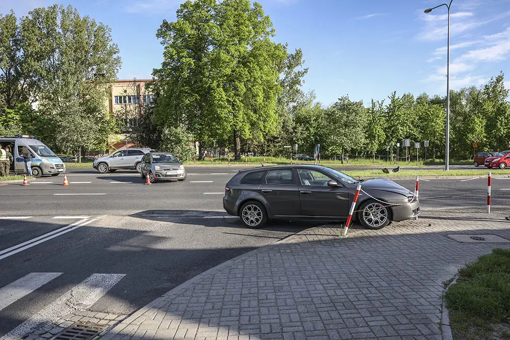 Kierujący fordem wyjeżdżał z zatoki autobusowej. Wtedy miał wjechać pod alfę romeo. Doszło do silnego zderzenia. Ford został uderzony w tył. Alfa romeo po zderzeniu z fordem wypadł z drogi uderzając w słupki na chodniku.