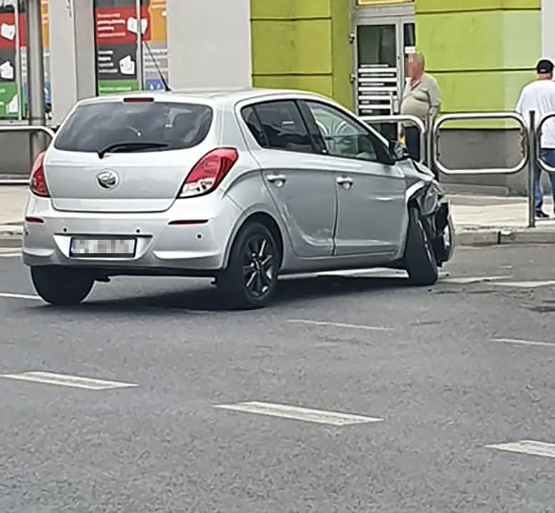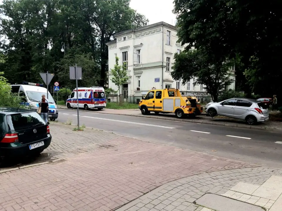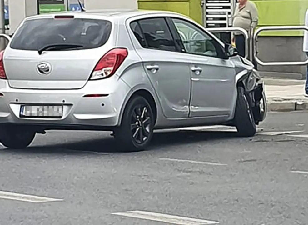 O zderzeniu samochodów powiadomili nas czytelnicy. Hyundai stoi na skrzyżowaniu, Bmw zjechało na chodnik.
