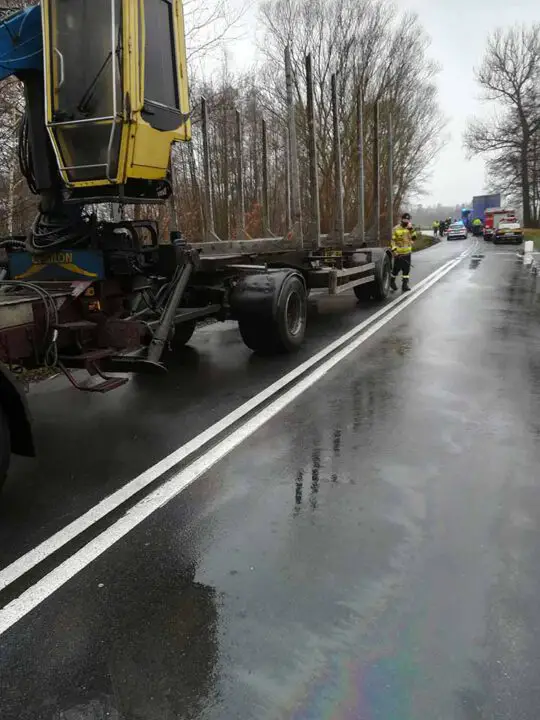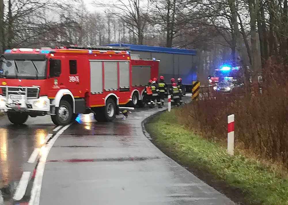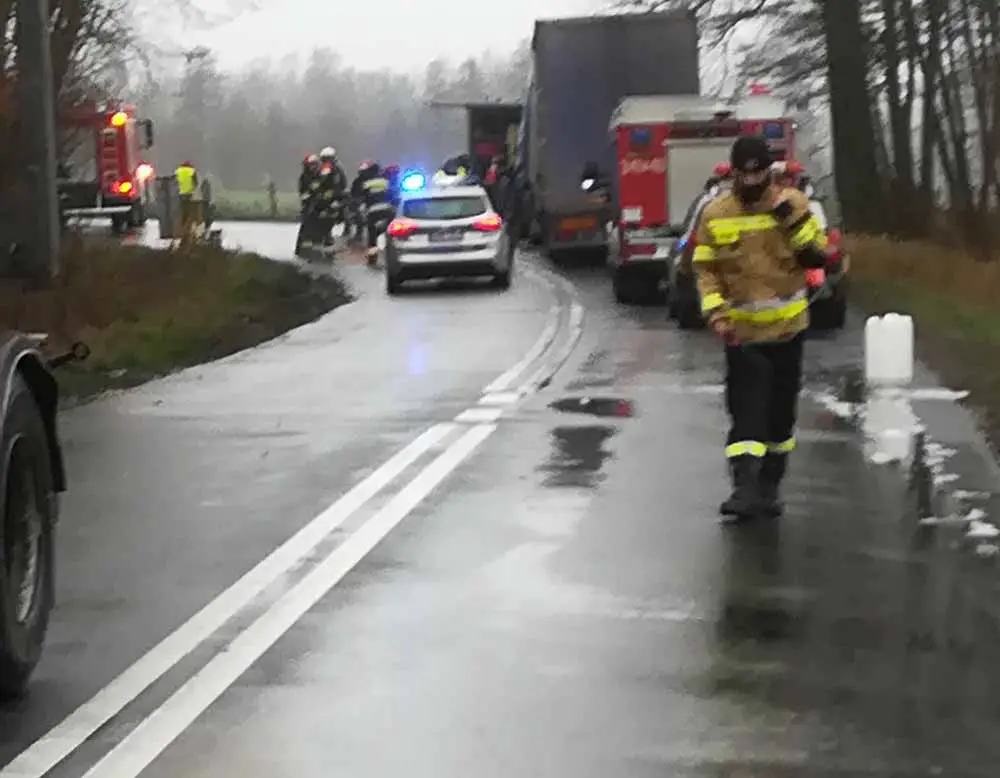 Do zderzenia doszło około godz. 9.00 rano. Kabinami zderzyły się dwie ciężarówki. Jedna z naczepą, druga do przewozu drewna. Do zderzenia doszło podczas wymijania.