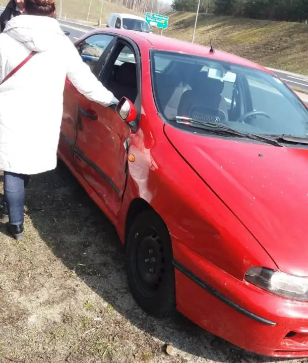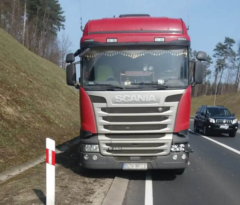 Kierowca ciężarówki widząc fiata zjechał na pobocze chcąc uniknąć mocnego zderzenia. Ciężarówka na poboczu zaryła kołami w miękkim piachu. Na szczęście nie przewróciła się.
