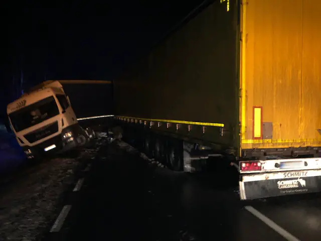 – Zadanie było trudne. Trzeba było usunąć dwie ciężarówki i dwa auta osobowe na śliskiej drodze – mówi Marek Dziubałka z pomocy drogowej Maxmar. Samochody zostały usunięte późną nocą we wtorek, 15 stycznia.