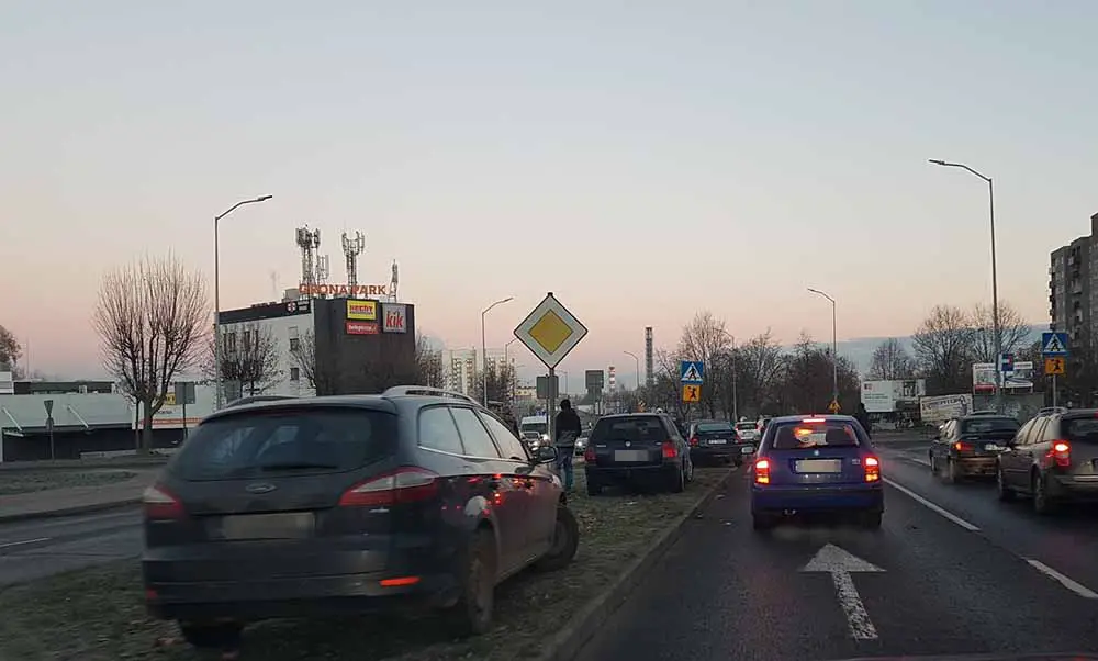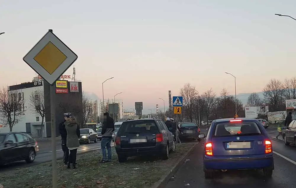 Do zdarzenia doszło około godz. 7.20. W zderzeniu uczestniczą cztery samochody. Ford, toyota, volkswagen i saab. To klasyczne najechanie na tył, do którego doszło przed przejściem dla pieszych na pasach w kierunku wiaduktu.