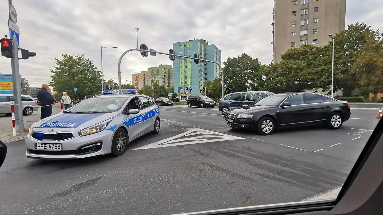 Około godziny 16:30 doszło do zderzenia audi z citroenem. Kierujący audi chciał skręcić w ul. Zawadzkiego. Wtedy doszło do mocnego zderzenia z citroenem, który wyjeżdzał z ul. Zawadzkiego i skręcał na ul. Wyszyńskiego. Z jednego pojazdu po zderzeniu wypłynęły płyny eksploatacyjne.