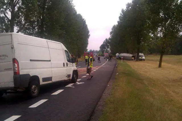 Na miejscu są dwie jednostki straży pożarnej ze Świebodzina. Droga jest zablokowana, policja zorganizowała objazdy.