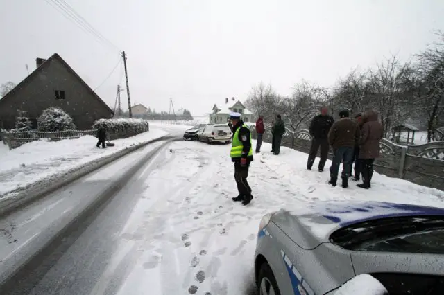 Jedna osoba została zabrana do szpitala. Ruchem na drodze kierowała policja. W chwili kraksy padał śnieg, na drodze było bardzo ślisko.