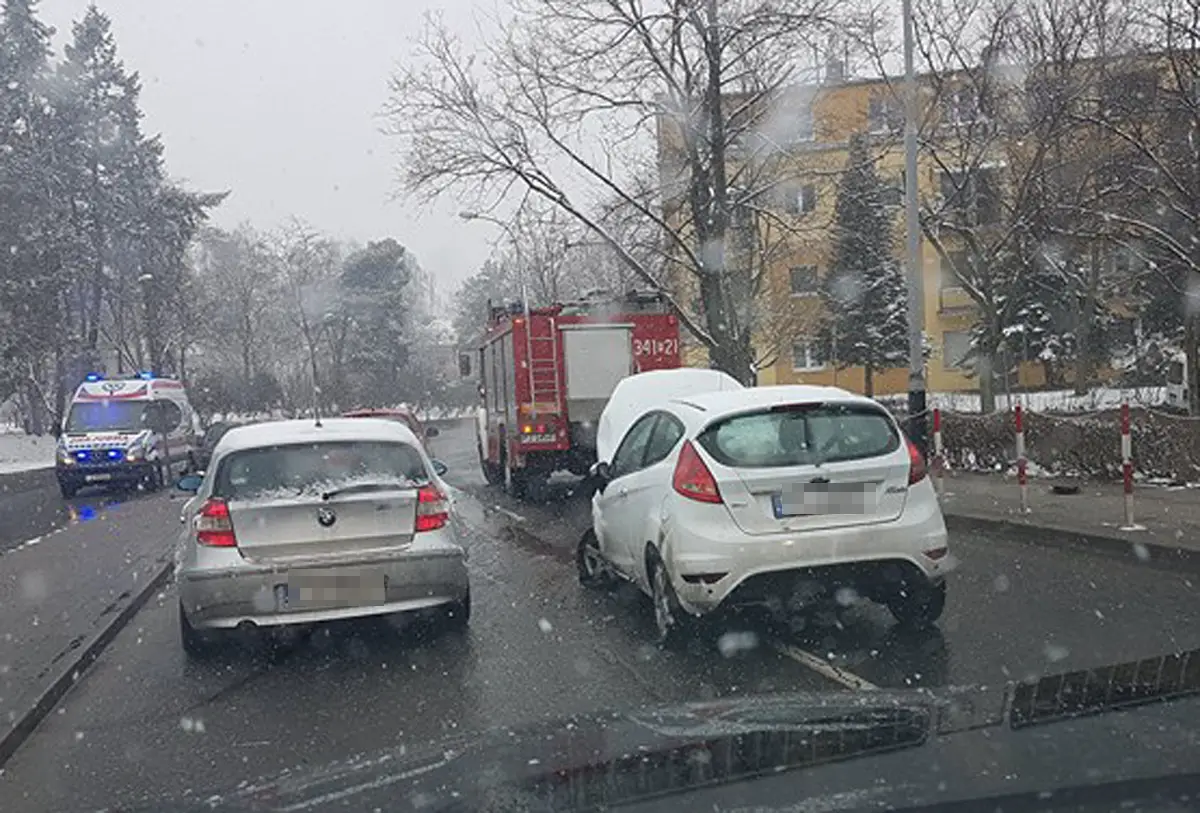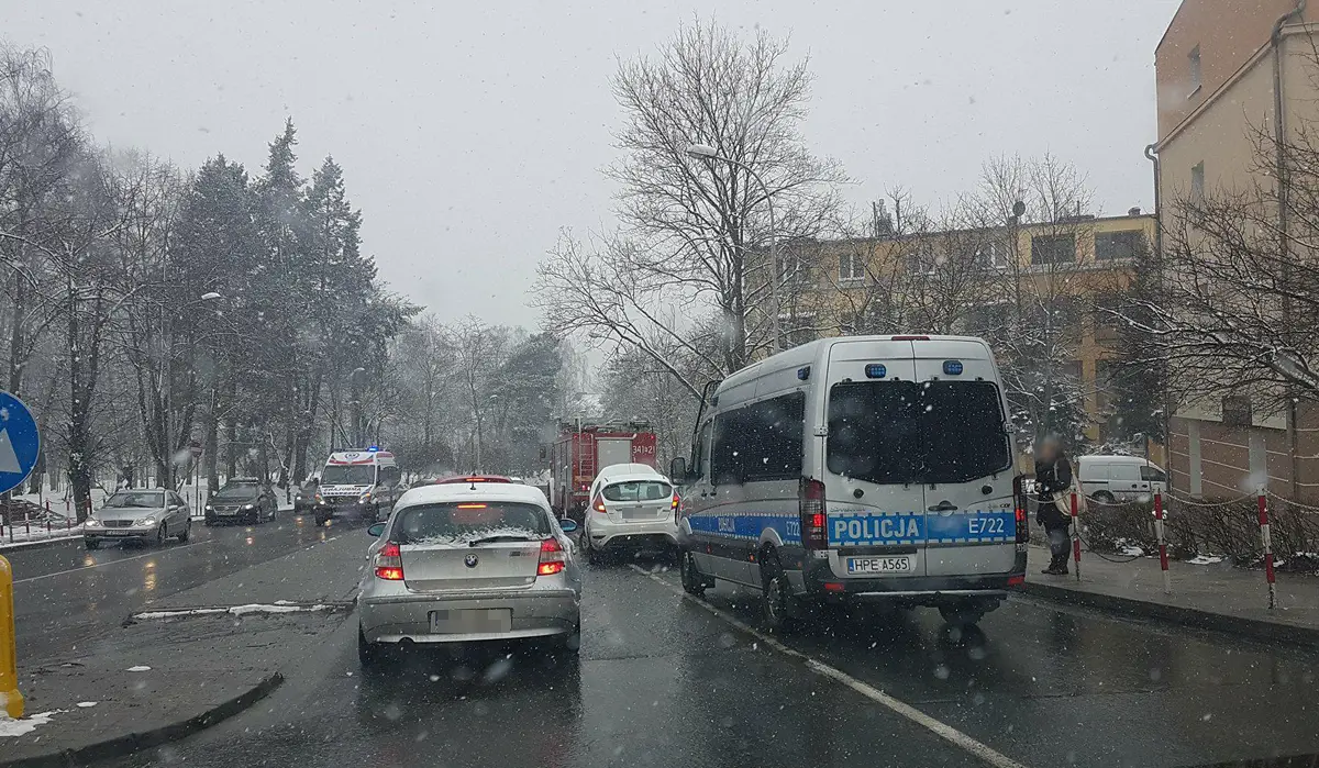 Na ul. Waryńskiego są utrudnienia ruchu. Skończą się dopiero jak pomoc drogowa zabierze rozbite samochody z ulicy.