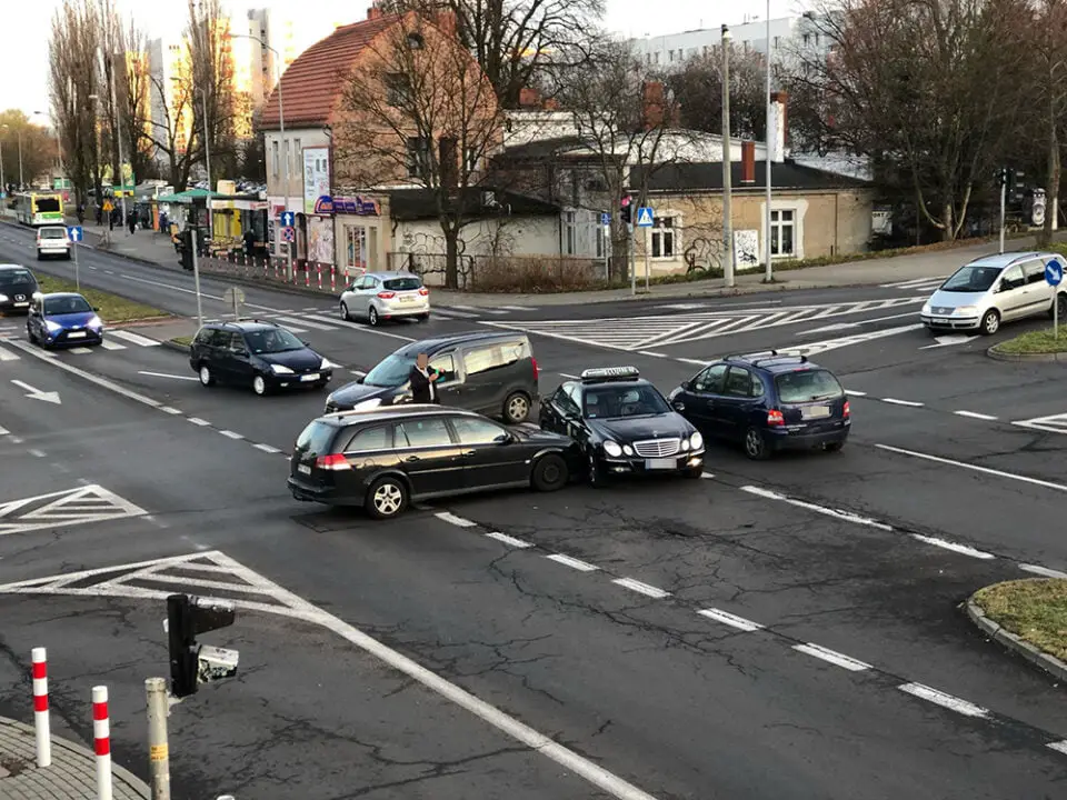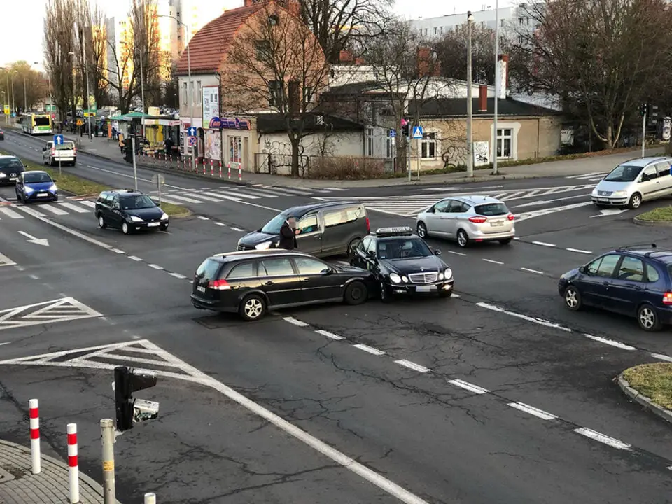 Na środku skrzyżowania zderzyły się mercedes taksówka i opel. Nikomu nic się nie stało. To tylko kolizja. Na miejsce została wezwana zielonogórska policja. Na skrzyżowaniu nie ma utrudnień w ruchu.