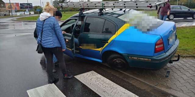Kierująca renault wjechała na rondo Kasprzaka tak nieostrożnie, że uderzyła w prawidłowo jadącą skodę. Siła uderzenia była duża. Skodę obróciło na jezdni i uderzyła jeszcze w krawężnik. W renault jechała kobieta w zaawansowanej ciąży i dziecko. Obje zostali zabrani innym samochodem na badania do szpitala. Jadącemu skodą się nie stało.