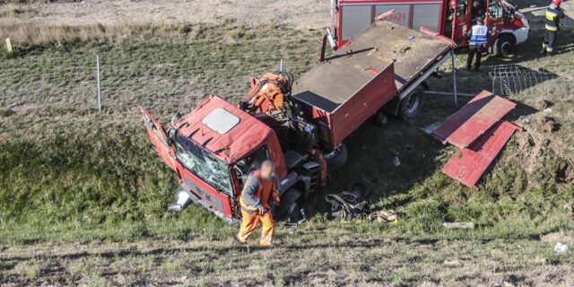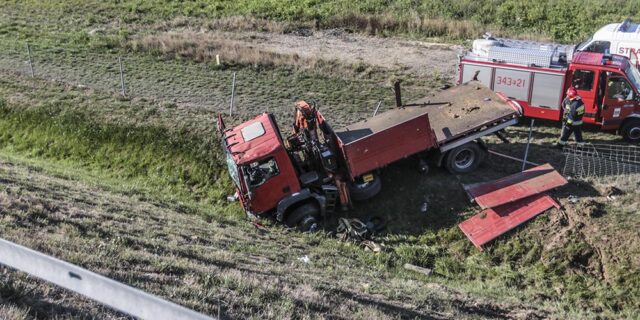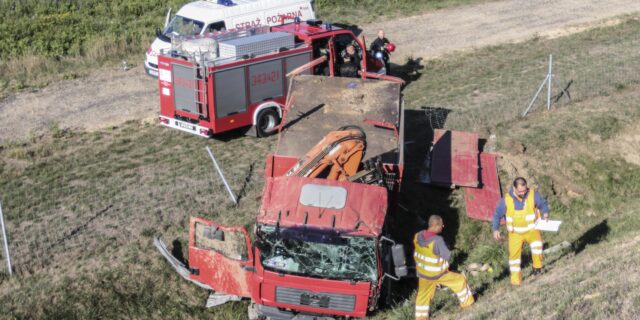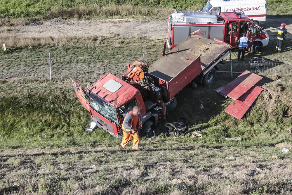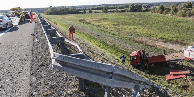 Do zdarzenia doszło w poniedziałek, 17 września, około godz. 8.30. Kierujący hondą uderzył w barierki i ciężarówkę, która wyleciała z drogi i spadła z wysokiej skarpy.