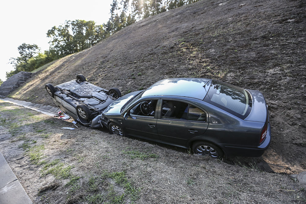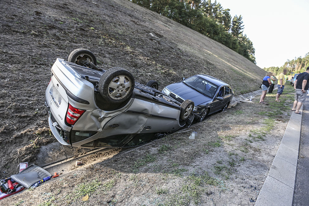 Kierujący skodą nie miał szans uniknięcia zderzenia. Uderzył w tył mercedesa, który wypchnięty wypadł z drogi. Na poboczu samochód koziołkował upadając na dach. Skoda również wypadła z drogi.