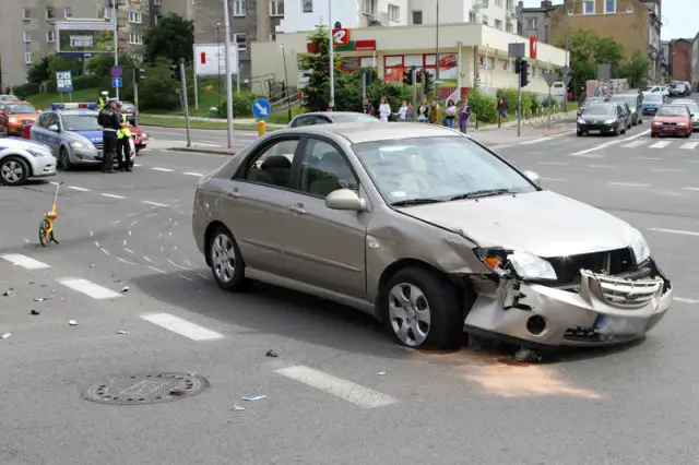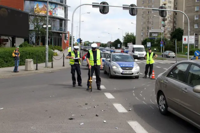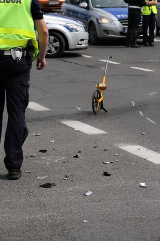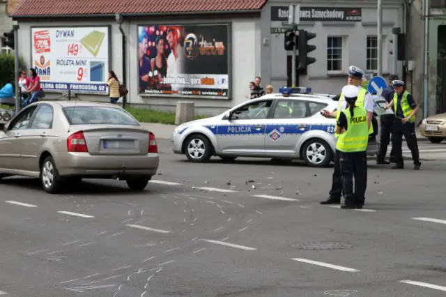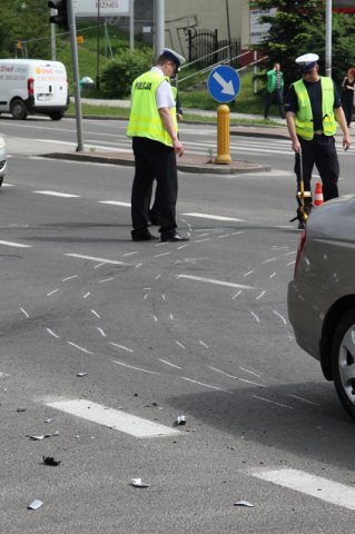 Do zderzenia doszło w czwartek około godz. 14.00 na skrzyżowaniu ulicy S. Moniuszki, al. Konstytucji 3 Maja i Fabrycznej. Policyjny motor zderzył się z samochodem kia.