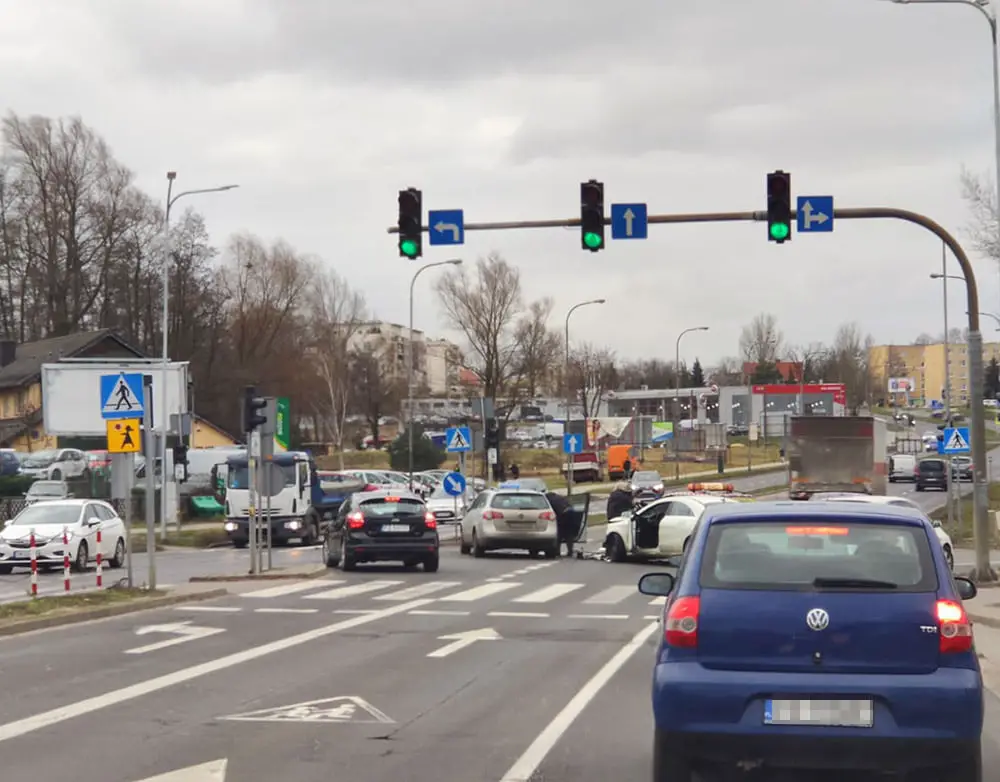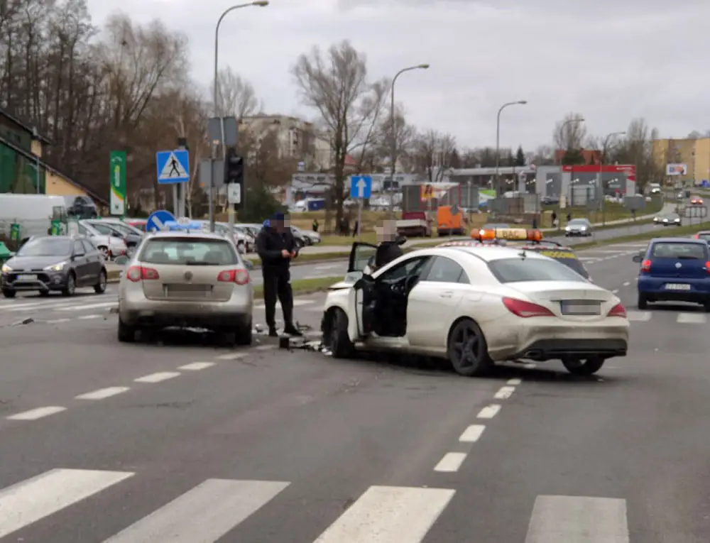 Na skrzyżowaniu zderzyły się mercedes oraz volkswagena passat. Kierujący passatem taksówkarz zapewnia, że kierująca mercedesem na skrzyżowanie wjechała na czerwonym świetle. Kobieta kierująca mercedesem mówi, że miała zielone światło. Winnego zderzenia ustalą zielonogórscy policjanci. Na miejscu zderzenia samochodów są strażacy, którzy zabezpieczyli wycieki z rozbitych pojazdów. Na skrzyżowaniu są poważne utrudnienia w ruchu.