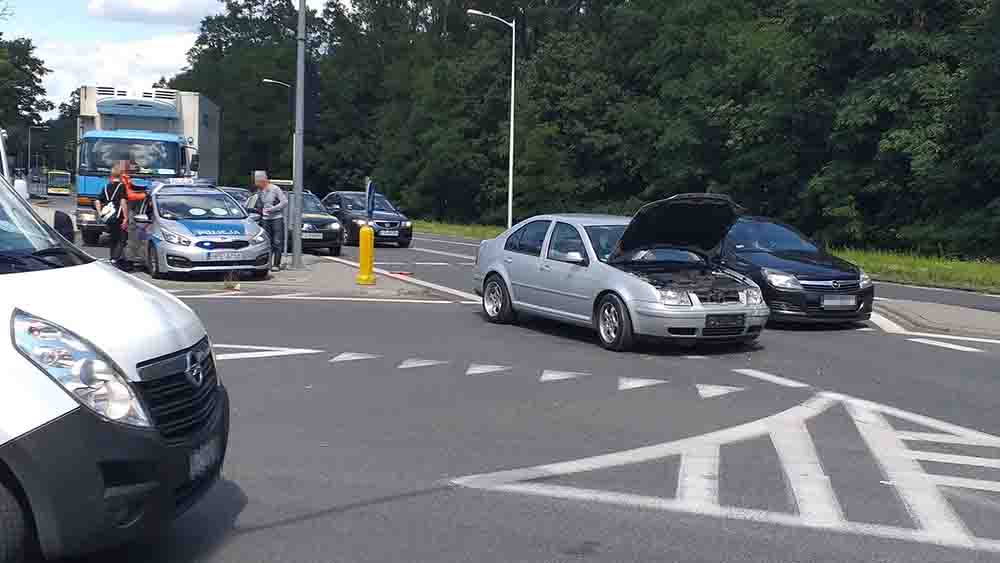 Kierujący kią wjeżdżał na ul. Batorego. Wtedy wjechał prosto pod volkswagena jadącego do ronda. Doszło do zderzenia. W obu samochodach zostały wyrwane koła. W volkswagenie wystrzeliły poduszki powietrzne. Na miejsce zdarzenia została wezwana policja oraz karetka pogotowia ratunkowego. Na drodze są utrudnienia w ruchu.