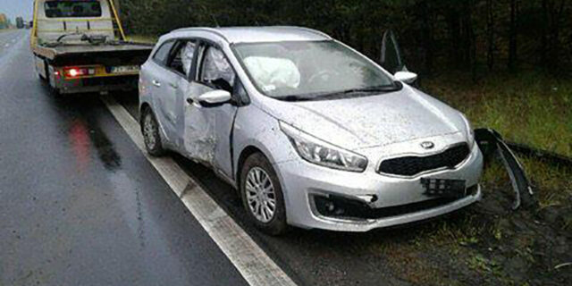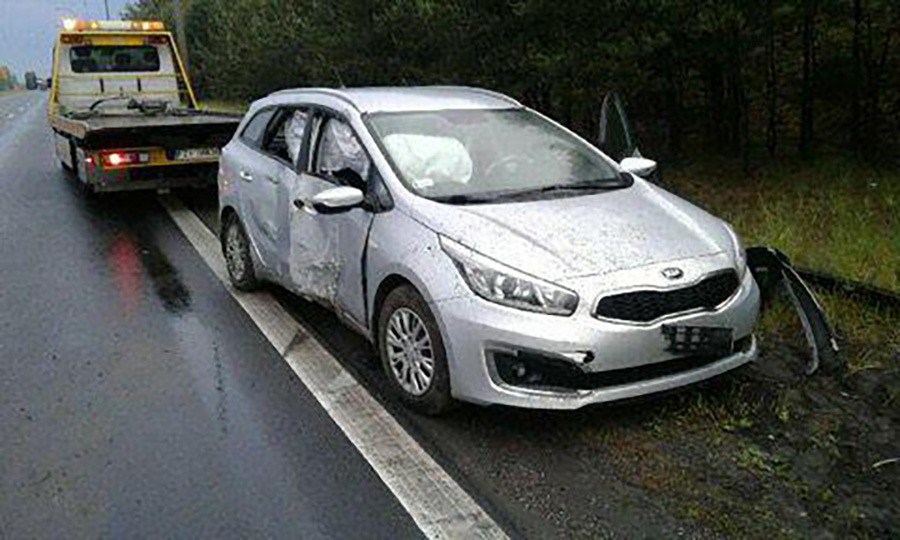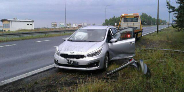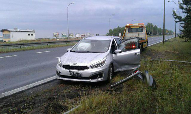 Do zdarzenia doszło w czwartek, 17 maja, z samego rana na Trasie Północnej. Kierujący laguną zderzył się z kią. Oba auta wypadły z drogi. Kia uderzyła też w lampę kosząc ją.