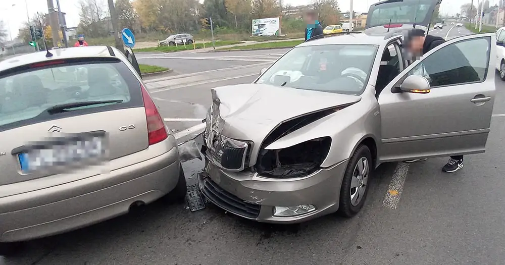 Kierująca citroenem wjechała na skrzyżowanie tak nieostrożnie, że zajechała drogę kierowcy jadącemu skodą. Ten nie zdążył zahamować i uderzył w bok citroena.