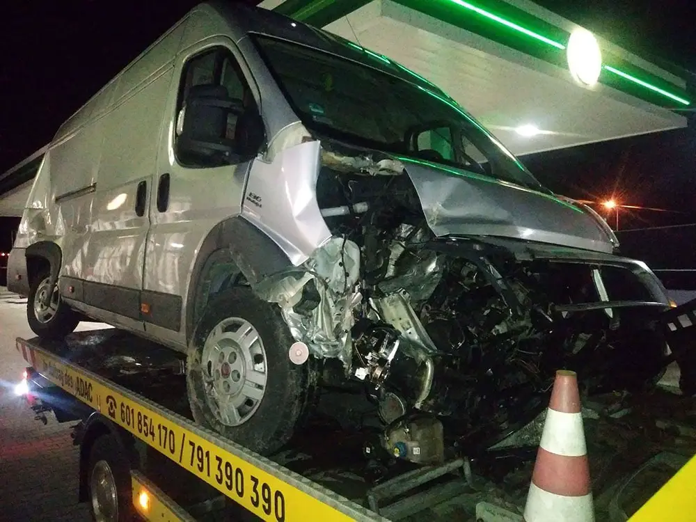 Kierujący busem jechał z Gorzowa drogą krajową nr 22. Nagle uderzył w nieoświetloną maszynę rolnicza. Ciągnął ją kierujący traktorem. Kierowca busa w ostatniej chwili dostrzegł maszynę rolniczą, ale nie miał już szans uniknięcia zderzenia. Siła uderzenia była ogromna. Z busa wypadł silnik.