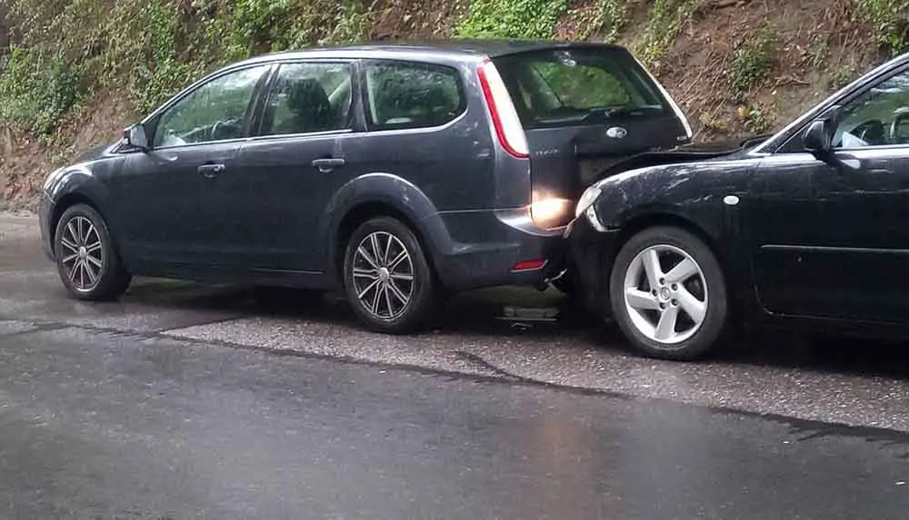 Kierująca citroenem nie zauważyła zwalniającej przed nią mazdy. Na śliskiej od deszczu drodze nie zahamowała i uderzyła w tył mazdy. Pchnięta mazda wpadła na tył forda. Na miejsce została wezwana gorzowska policja. Nikomu nic się nie stało. Zdarzenia zostało zakwalifikowane jako kolizja.