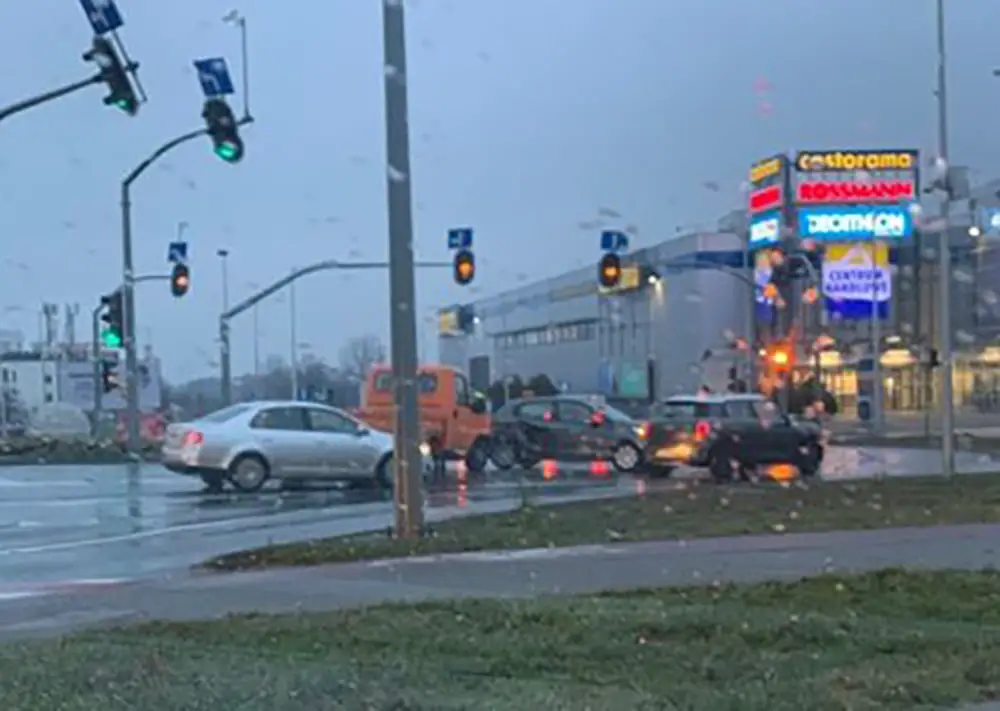 Na rondzie PCK zderzyły się ford, peugeot i dostawczy mercedes. Na szczęście nikomu nic się nie stało. To tylko kolizja. Na rondzie są jednak poważne utrudnienia w ruchu. Lepiej wybierać inną drogę.