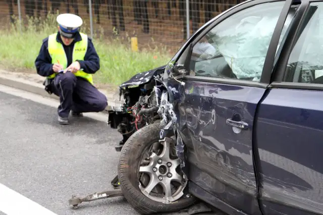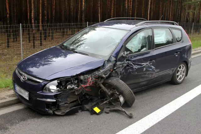 Kobieta kierująca renault zasnęła z kierownicą i zjechała na przeciwległy pas ruchu, uderzyła w hyundaia i seata. Sprawczyni kraksy została przewieziona do szpitala z podejrzeniem złamania obu nóg.