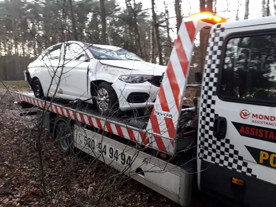 Godz. 15.46 – Fiat został już załadowany na lawetę – mówi Marek Dziubałka z pomocy drogowej Maxmar.