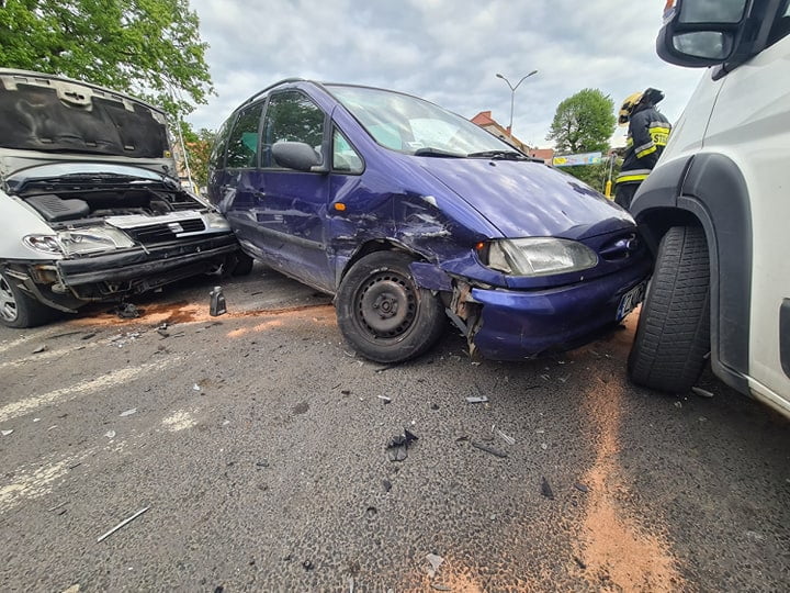 Do zderzenia trzech samochodów doszło w środę, 6 maja, w Skwierzynie. Strażacy OSP zabezpieczyli miejsce zdarzenia i sorbentem usunęli rozlane płyny z silników.
