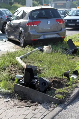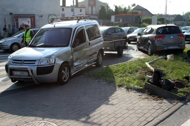 Do zdarzenia doszło w piątek po godz. 6.00 rano. Ulicą Dąbrówki jechał czerwony peugeot. Ze wstępnych ustaleń policji wynika, że samochód wjechał na skrzyżowanie na czerwonym świetle. Wtedy uderzył w seata, seat pchnięty uderzeniem wpadł na citroena. Samochód złamał słup sygnalizacji świetlnej.