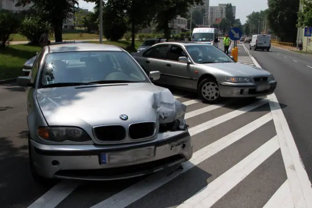 Kierowca BMW na ul. Podgórnej uderzył w hondę i fiata. Kierowca fiata został zabrany do szpitala. Kierowca BMW nie miał przy sobie ubezpieczenia samochodu.