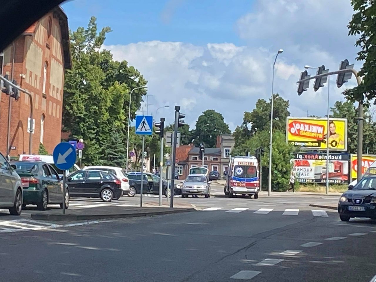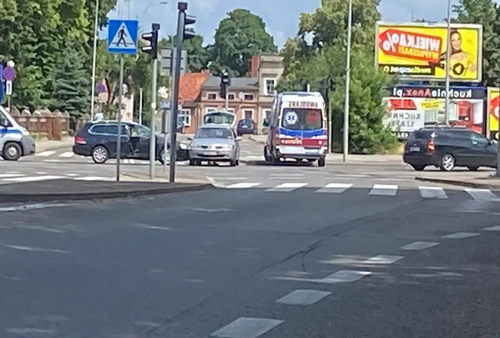 Do zdarzenia volkswagena i renault doszło w piątek, 2 lipca, na skrzyżowaniu ulic Długiej i 1 Maja. Na miejscu jest już karetka pogotowia ratunkowego.