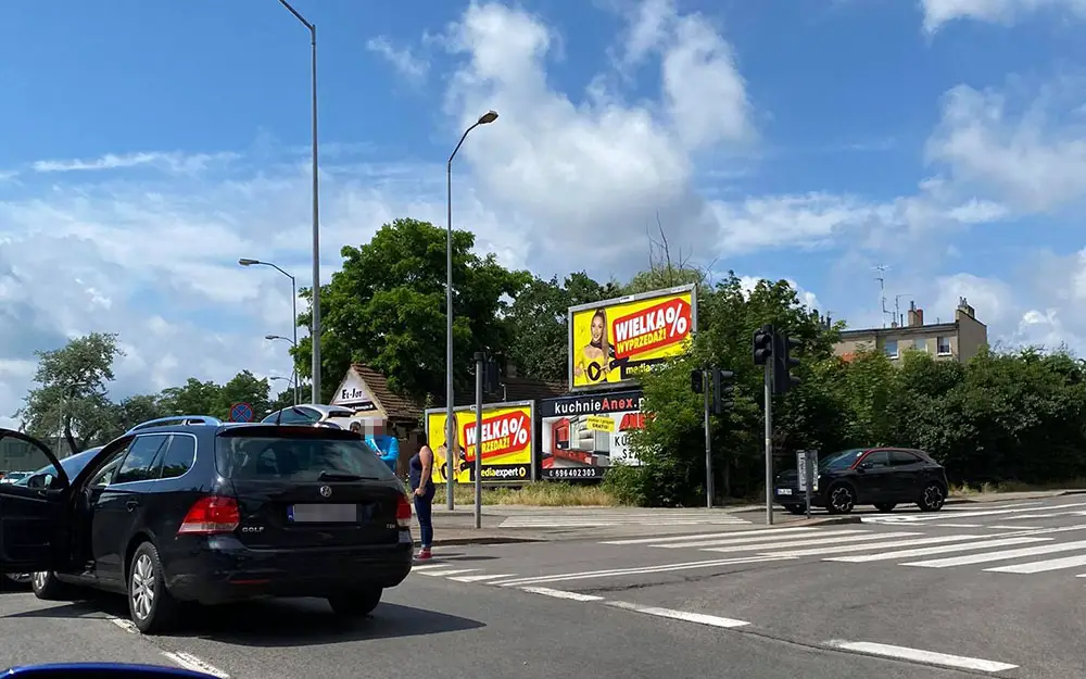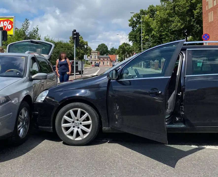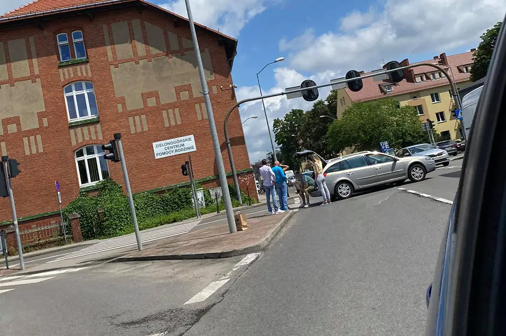 Volkswagen jadący ul. Długą uderzył w bok renault przecinającego skrzyżowanie jadąc ul. 1 Maja.
