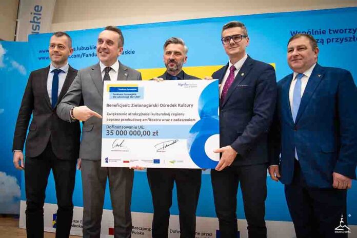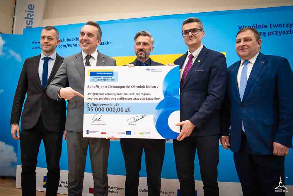 Przebudowa zielonogórskiego amfiteatru zbliża się wielkimi krokami. W poniedziałek, 8 grudnia, prezydent Marcin Pabierowski odebrał w urzędzie marszałkowskim symboliczny czek na kwotę 35 mln zł. Jest to wsparcie inwestycji przez samorząd województwa środkami z funduszy europejskich.