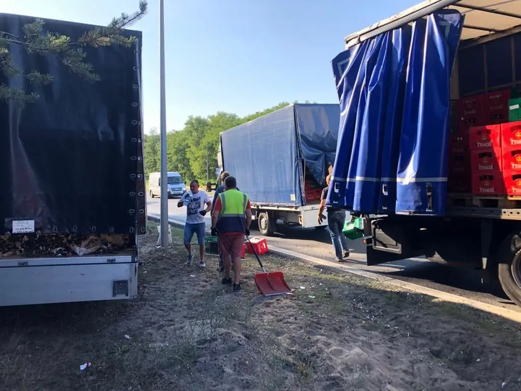 Setki butelek po piwie, które wypadły z ciężarówki na Trasie Północnej na kilka godzin sparaliżowały ruch na drodze. Rozbite butelki trzeba było sprzątać ręcznie.