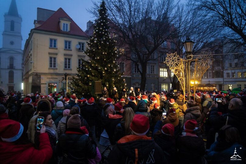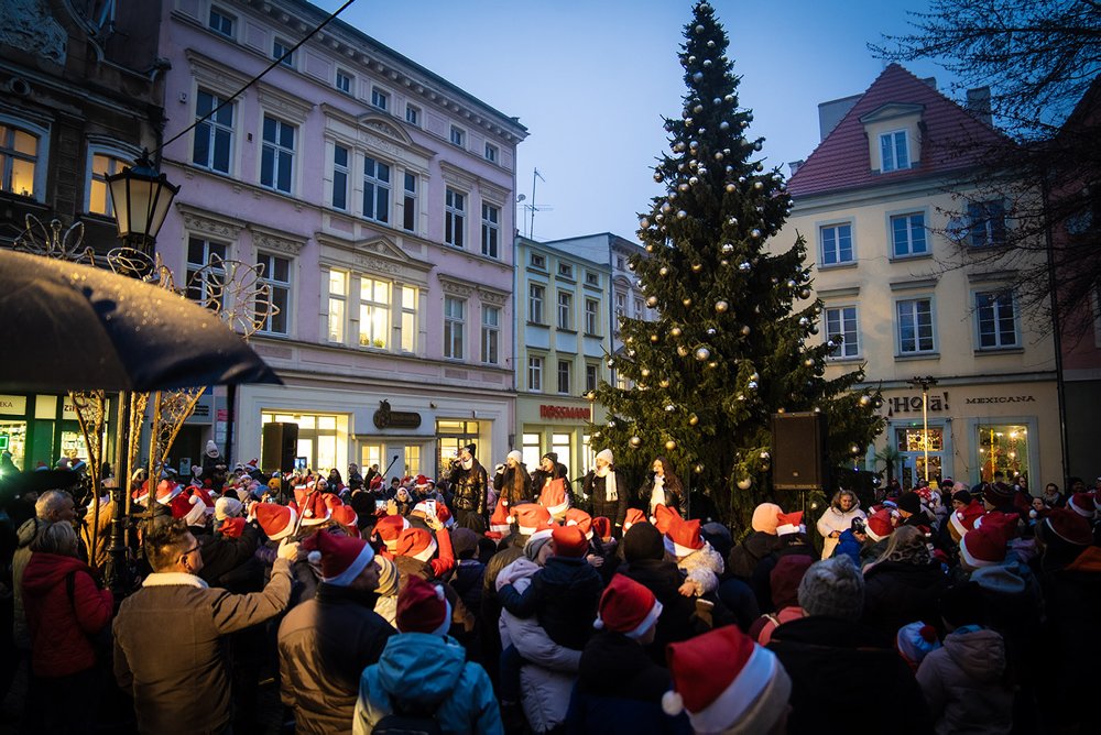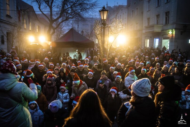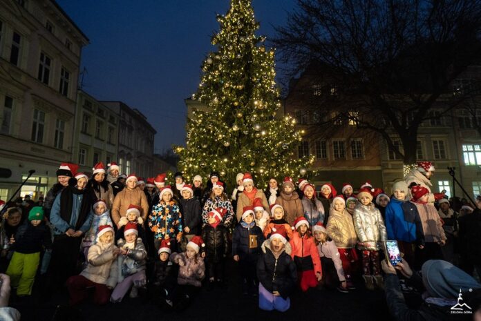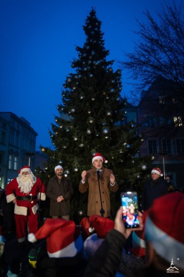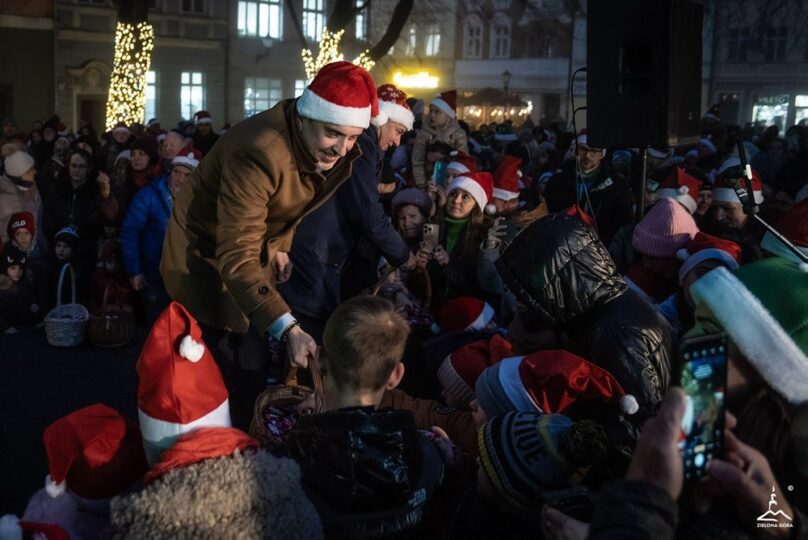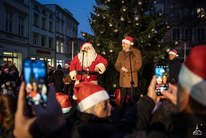 Zielona Góra oficjalnie wkroczyła w magiczny czas Bożego Narodzenia. Prezydent Marcin Pabierowski razem z mieszkańcami wspólnie odliczał „trzy… dwa… jeden…” i w jednej chwili rozbłysła wielka choinka na Starym Rynku przy ratuszu, a zaraz po niej wszystkie świąteczne iluminacje, girlandy na latarniach, świetlne fontanny, migoczące gwiazdy i tysiące ciepłych lampek oplatających drzewa.