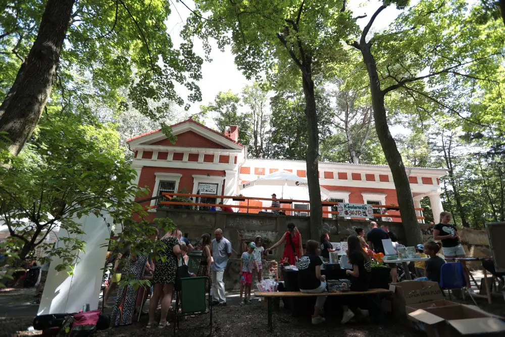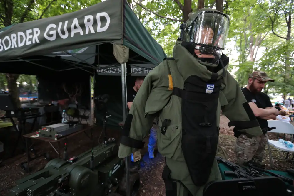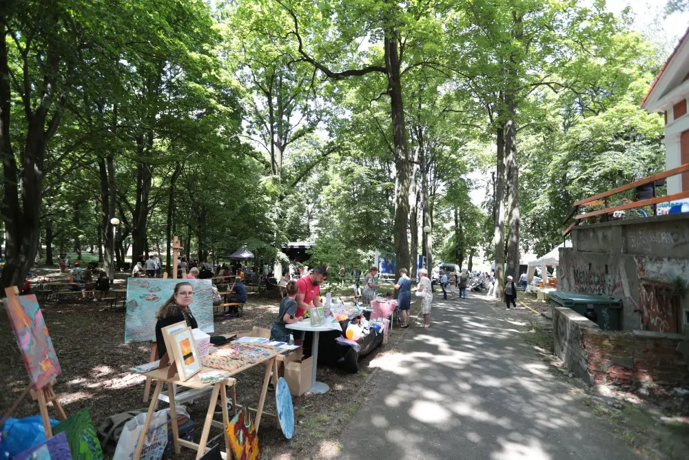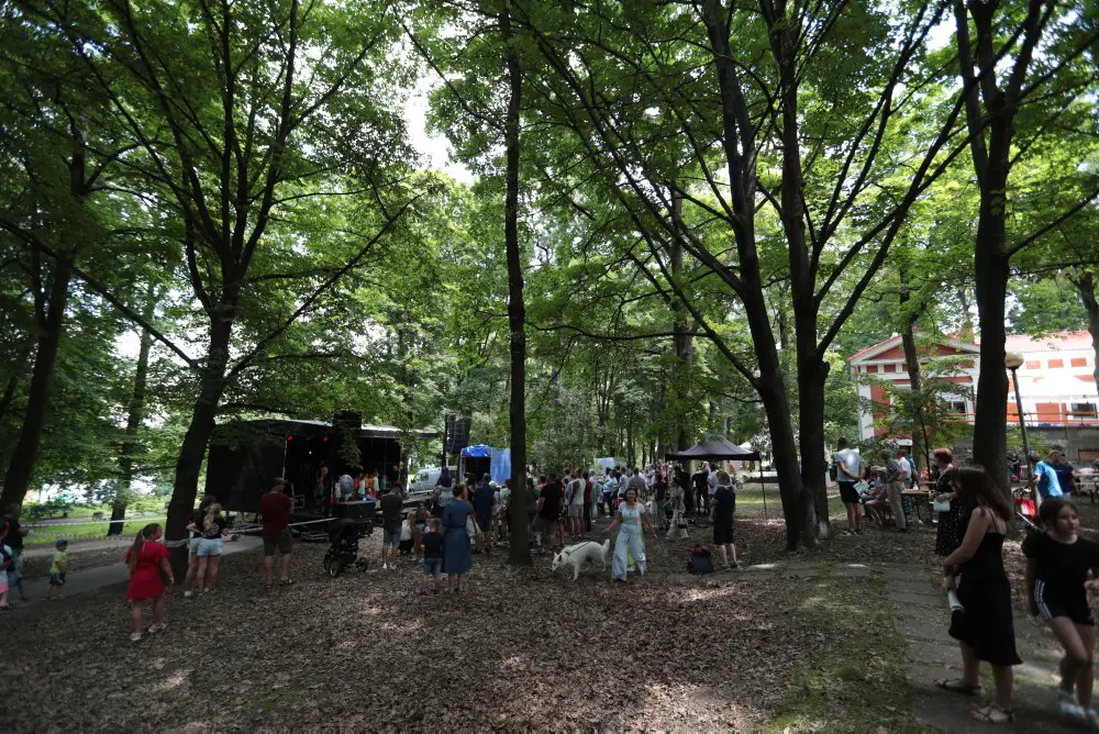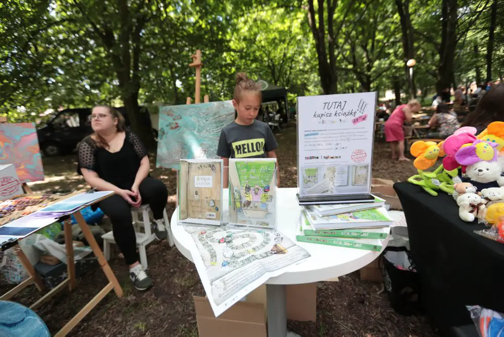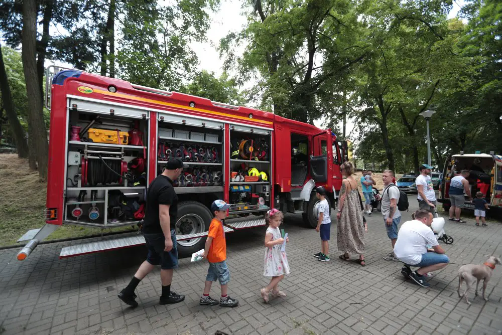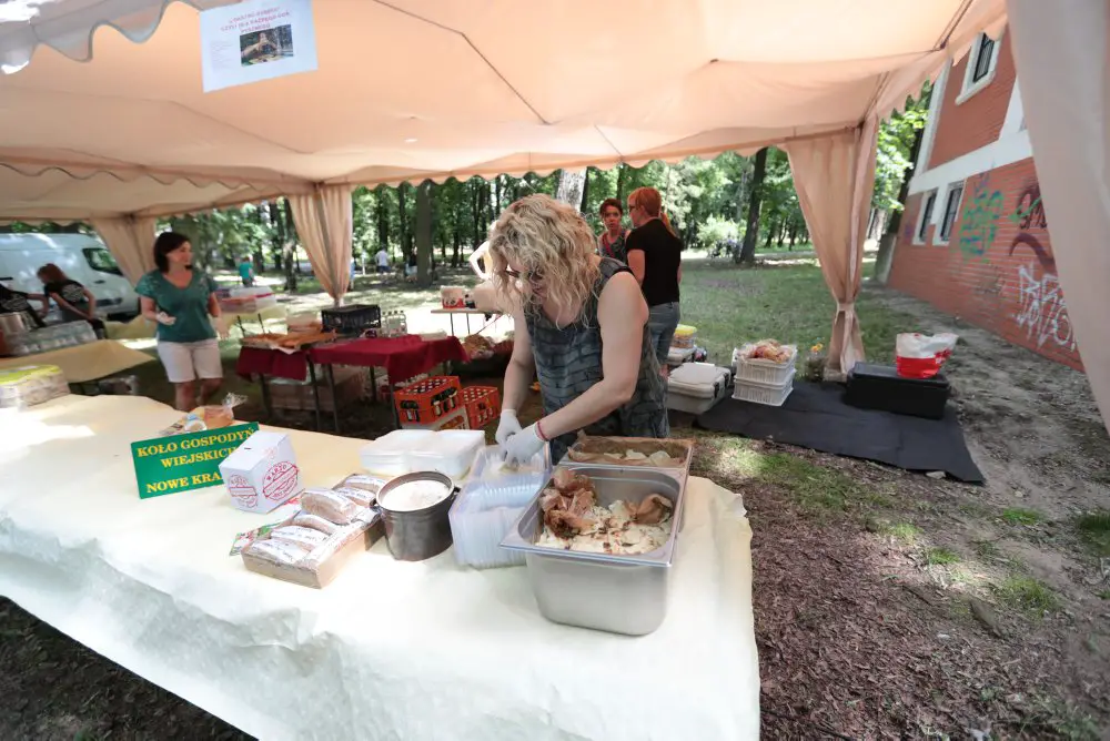 W parku już jest tłum ludzi. W strefie gastro są jeszcze pyszne pierogi i ciasta. Zjemy również rewelacyjną grochówkę. Po jedzeniu można pójść na wyprzedaż garażową, oglądnąć policyjny motocykl lub broń straży granicznej.