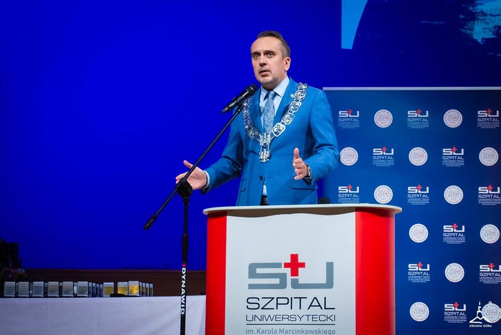 – Gratuluję wszystkim pracownikom pięknego jubileuszu. Ta niezwykła historia 80 lat pokazuje, jak zielonogórski szpital się zmieniał, jak wpisuje się w mapę medycznego bezpieczeństwa miasta. Ja to ogromnie cenię. Gratulujemy wszystkim wyróżnionym – mówił prezydent i życzył całemu zespołowi, aby kolejne lata były pełne sukcesów i zapisane złotymi zgłoskami w historii tej wspaniałej placówki.