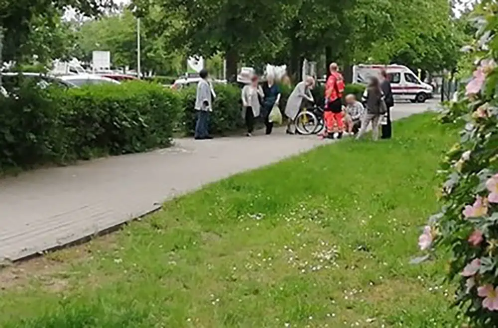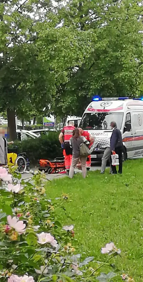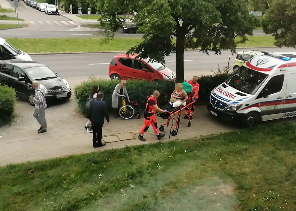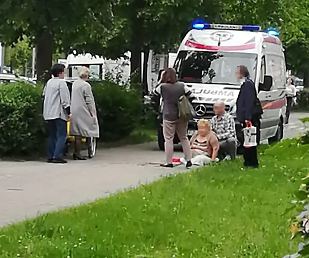 Na pomoc kobiecie ruszyli przechodnie. Kobieta krzyczała z bólu. Na pomoc została wezwana karetka pogotowia ratunkowego. Lekarz zajął się niepełnosprawną kobietą. Po chwili została zabrana na noszach do karetki i przewieziona do szpitala. Cały czas krzyczała z bólu.
