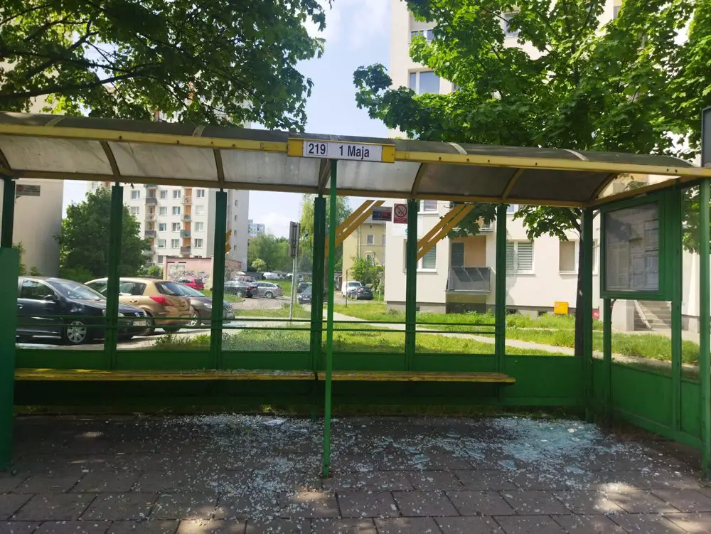 Wandalizm to problem trwający od wielu lat. Niestety celem wandali bardzo często są wiaty przystankowe. – W miniony weekend majowy nasiliły się akty wandalizmu, uszkodzono kilka wiat przystankowych – informuje MZK. Wandal lub wandale wybili szyby demolując wiaty.
