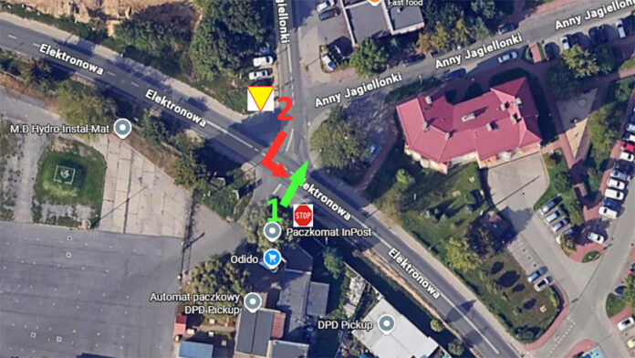 Nasz czytelnik zwraca uwagę na problem przejeżdżanie przez skrzyżowanie ulic Anny Jagiellonki z ulicą Elektronową. Kto tu ma pierwszeństwo?