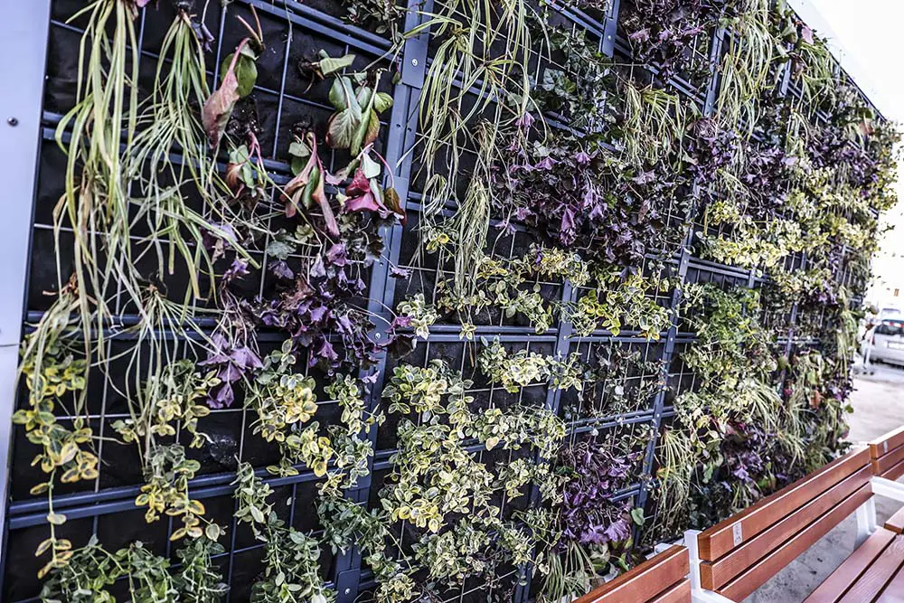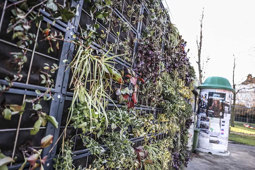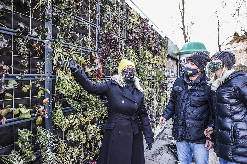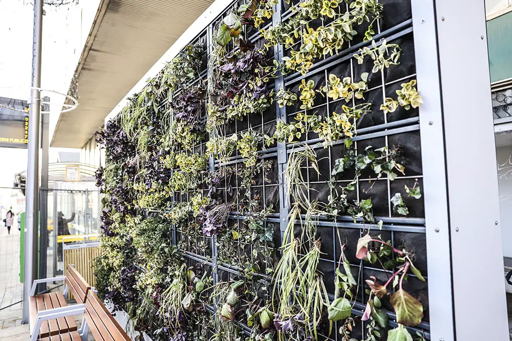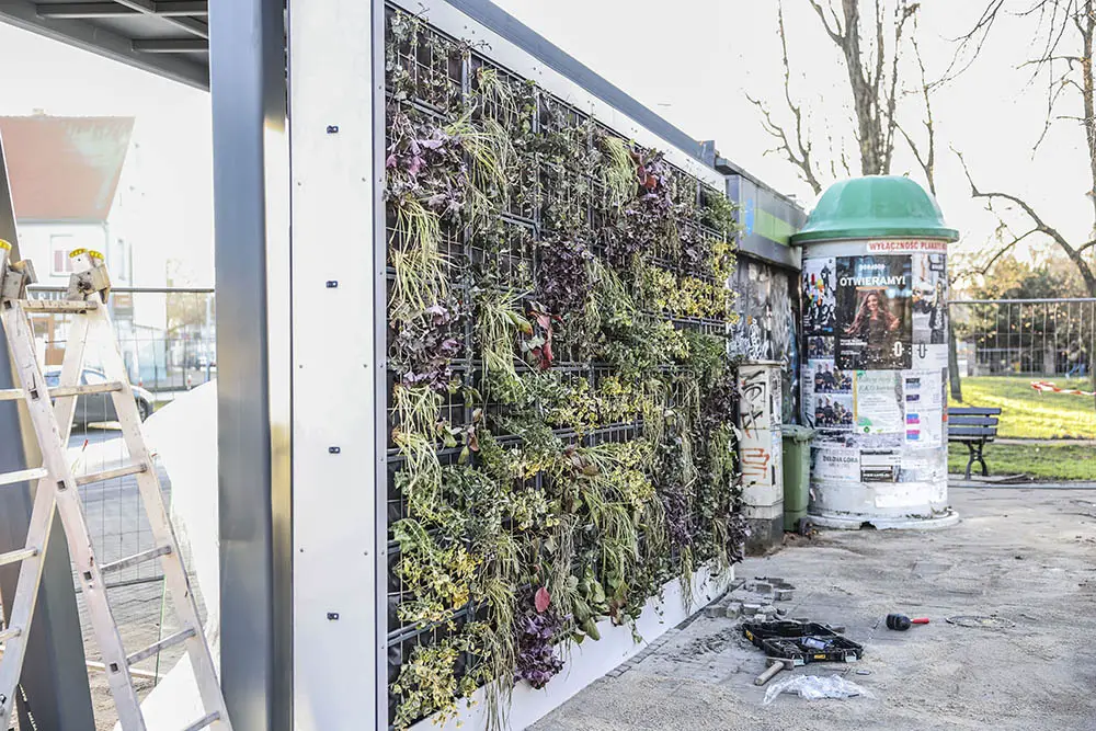 W ścianach przystanków zostały posadzone rośliny. O nawodnienie dba specjalny system. Woda dostaje się do roślin ze zbiornika wkopanego w ziemi koło przystanku. Na zielonych przystankach posadzono między innym. bergenie, turzyce morowe, irgi, trzmieliny, żurawki oraz bluszcz.