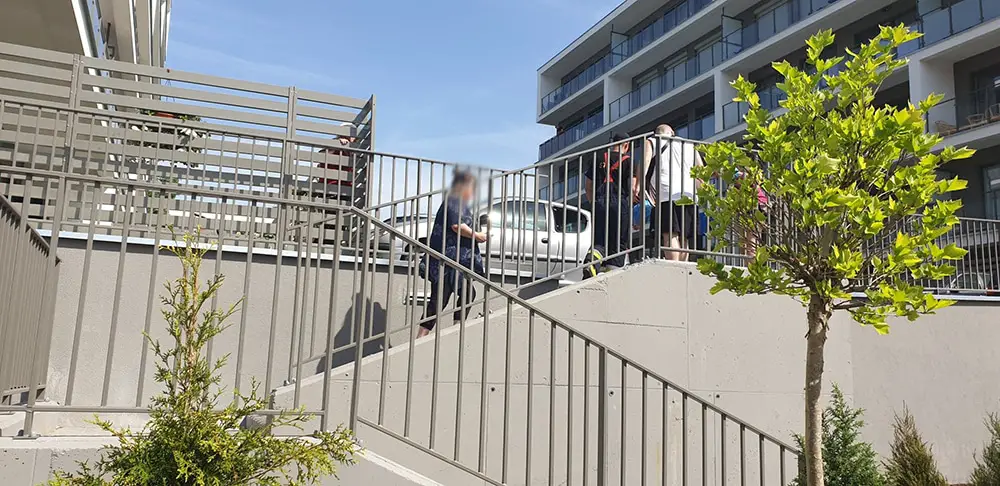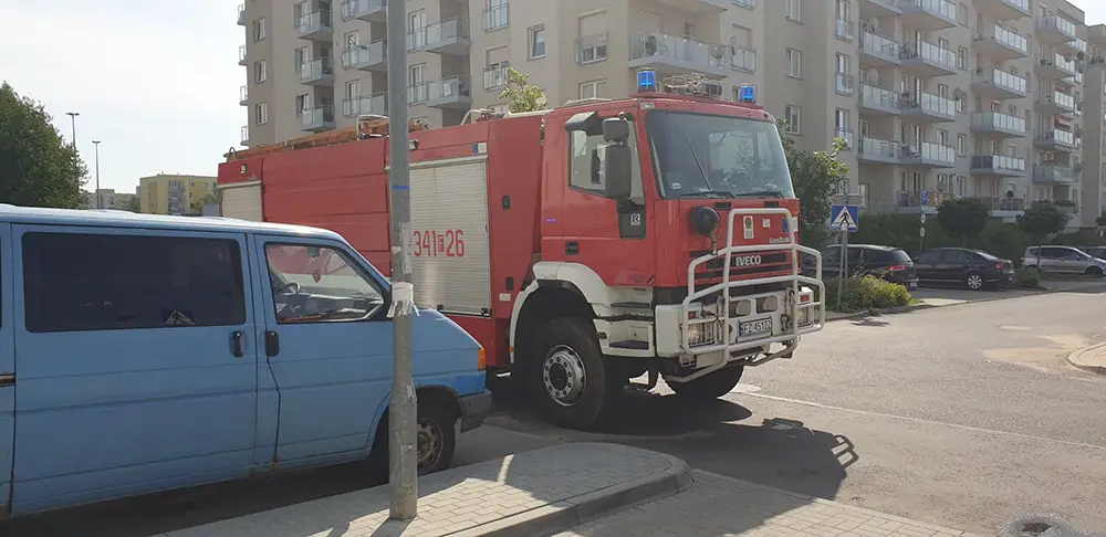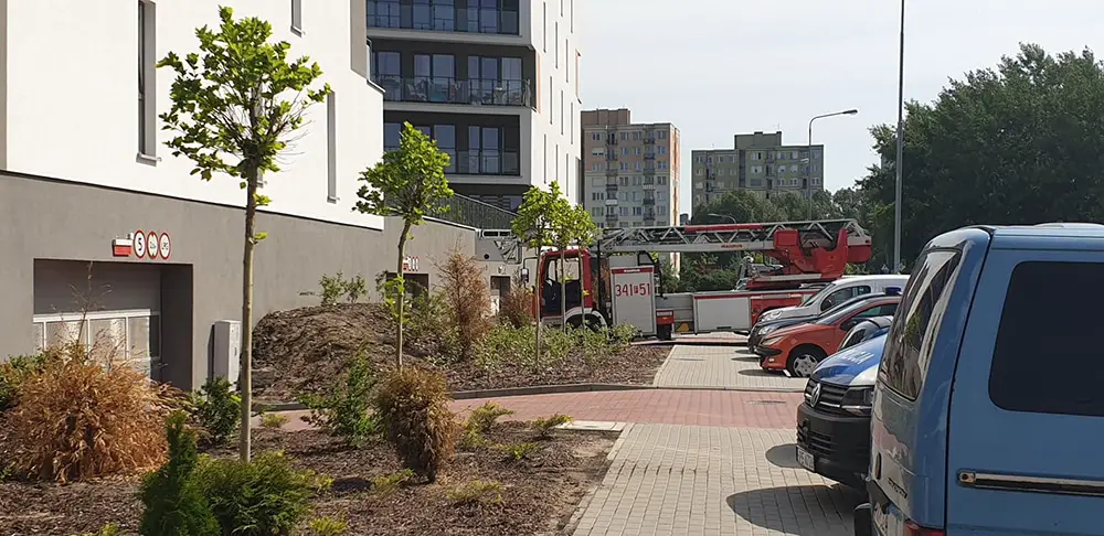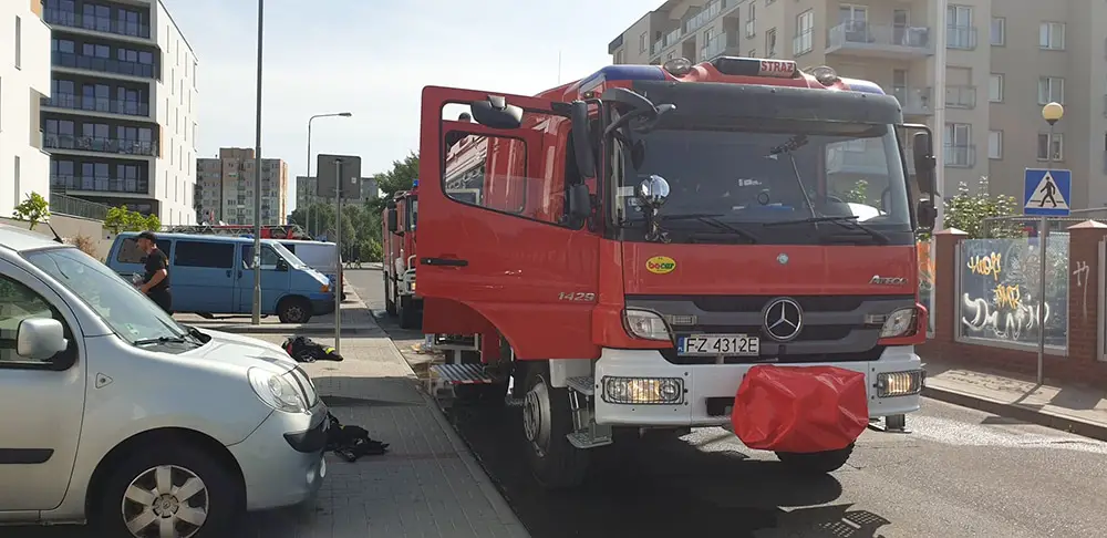 Od płonących wycieraczek zapaliły się drzwi do mieszkania. Pod wpływem temperatury rozszerzyły się i zaklinowały tak, że nie można było ich otworzyć. Na miejsce przyjechały wozy straży pożarnej. Strażacy szybko opanowali sytuację i dzięki temu nie doszło do pożaru w bloku.