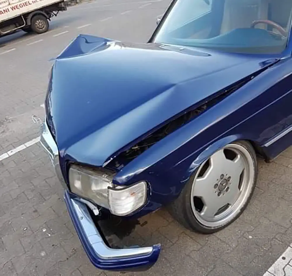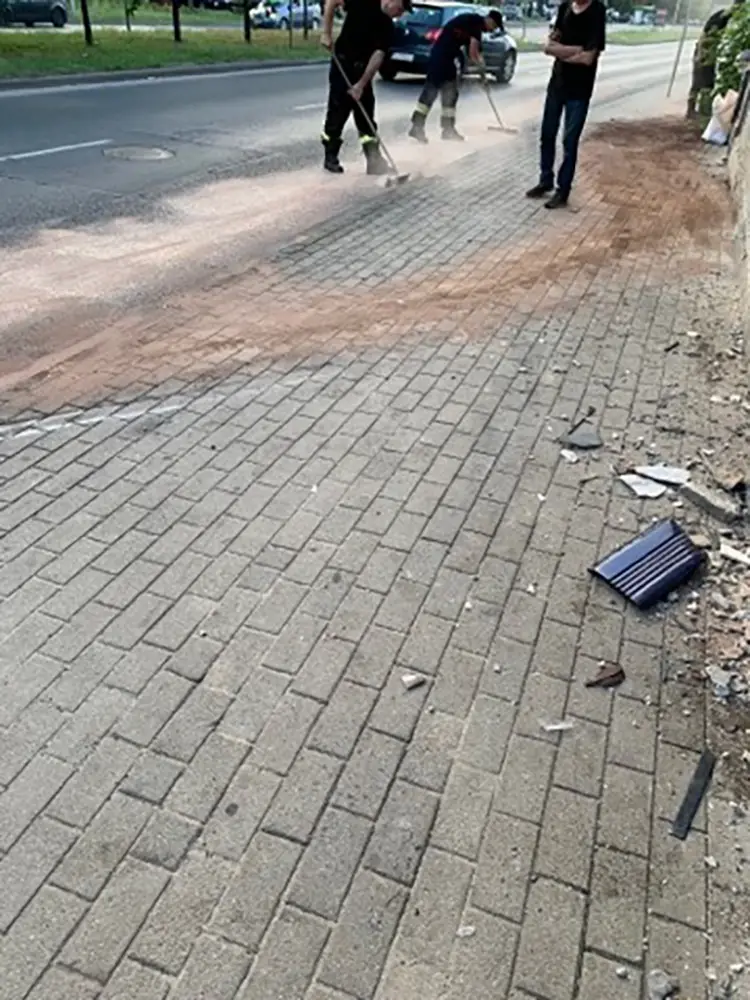 Kierujący mercedesem jadąc z dużą prędkością wypadł z drogi i uderzył w mur kamienicy koło marketu Carrefour. Kierowca wysiadł z rozbitego mercedesa, porzucił pojazd i uciekł z miejsca zdarzenia.