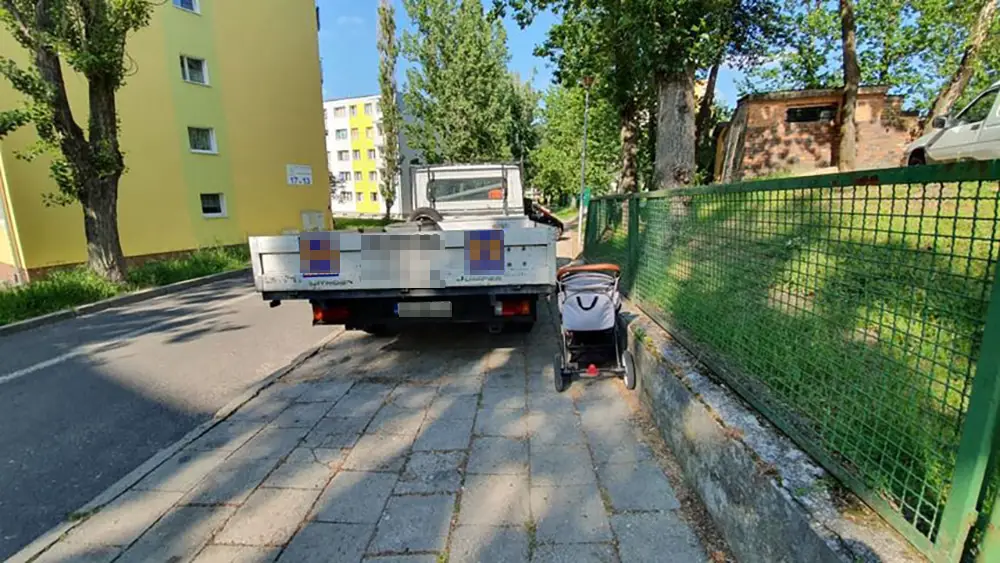 Mistrzu parkowania z dostawczaka, chodnik nie jest do parkowania. To miejsce dla pieszych. Samochody zostawia się na parkingach.