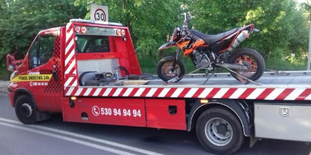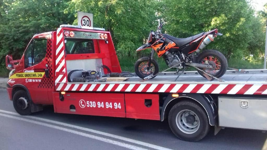 Motocykl na polecenie policji zabezpieczyła pomoc drogowa Maxmar. Koszty poniesie właściciel motocykla.