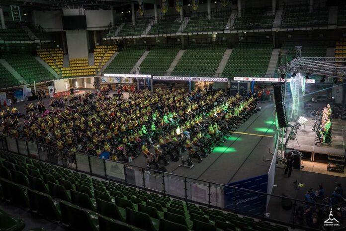 W hali CRS odbył się Orkiestrowy Lubuski Maraton Indoor Cycling & Running, czyli wielkie pedałowanie i bieganie dla WOŚP. Na parkiecie, na którym na co dzień rozgrywają mecze koszykarze Zastalu, stanęło ponad 200 rowerów stacjonarnych Przyjechały tu z całej Polski, podobnie jak uczestnicy dzisiejszej sportowej zabawy. Dominują jednak zielonogórzanie i Lubuszanie.