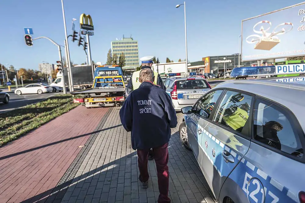 Kierujący renault laguną jechał ul. Wojska Polskiego w kierunku ronda PCK. Miał czerwone światło, mimo to wjechał na rondo i tam uderzył w audi. Po chwili uciekł z miejsca zdarzenia i schował się w krzakach. Z ukrycia obserwował miejsce zdarzenia. Tam zatrzymali go policjanci.