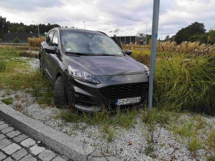 – Do zdarzenia doszło około godz. 8.40 na rondzie przy Wilkanowie – mówi podinsp. Katarzyna Świerkowska-Teska, naczelniczka zielonogórskiej drogówki. Kierujący Fordem Kuga zamiast objeżdżać rondo, przejechał przez jego środek. Wcześniej uderzył w słupek zatrzymując się na znaku drogowym. Na miejsce dojechała zielonogórska drogówka.
