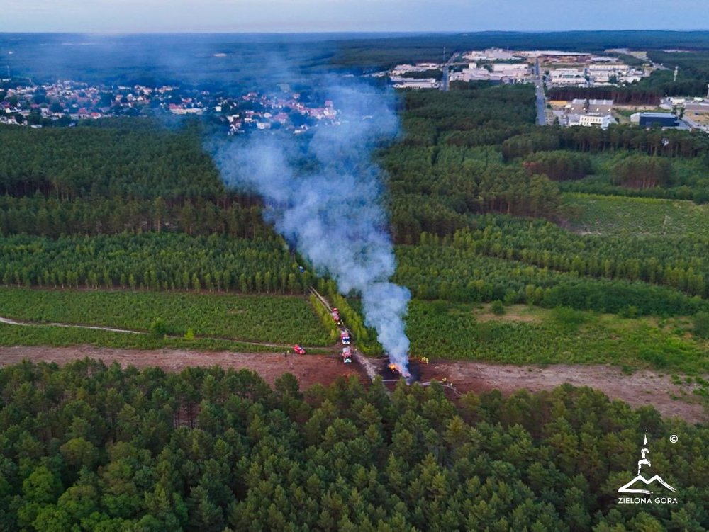 Na miejscu z ogniem walczyło 12 zastępów straży pożarnej, w tym niemal wszystkie jednostki OSP z Zielonej Góry, wspierane przez druhów z OSP Koźla. Działaniami dowodzi oficer operacyjny Państwowej Straży Pożarnej. Akcję wspierają również służby leśne. Do szybszego ugaszenia ognia zaangażowano samolot gaśniczy AN-2. Prezydent Pabierowski był w stałym kontakcie z dowódcą akcji. Niestety pożar był wynikiem podpalenia. Poszukiwaniem podpalacza zajmuje się zielonogórska policja.