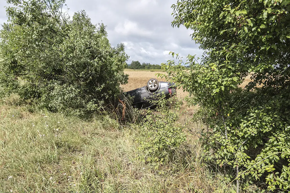 Skoda jechała z Cigacic w kierunku Zielonej Góry. W pewnym momencie kierowca wpadł w poślizg i zjechał na pobocze. Samochód wypadł z drogi i koziołkował na poboczu zatrzymując się na dachu.